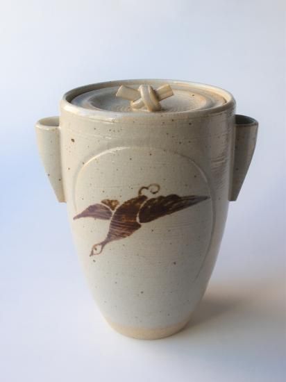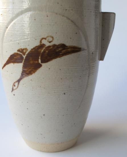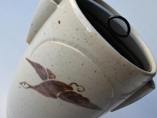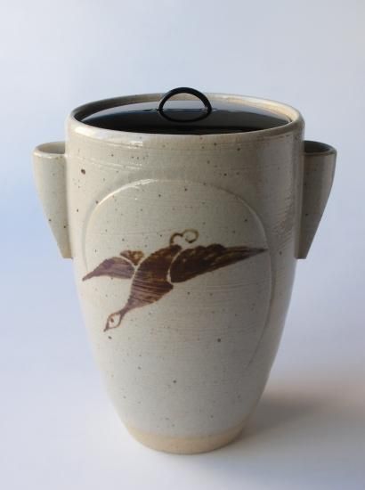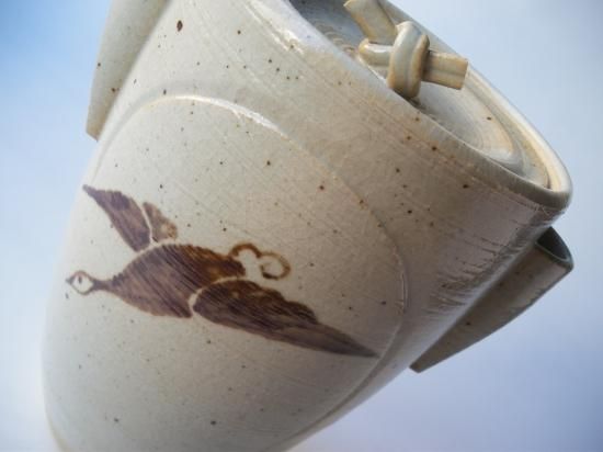 信楽焼 虫明写 雁の図細水指 (共箱)