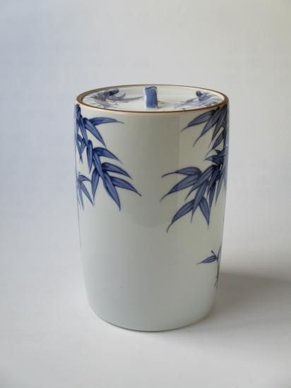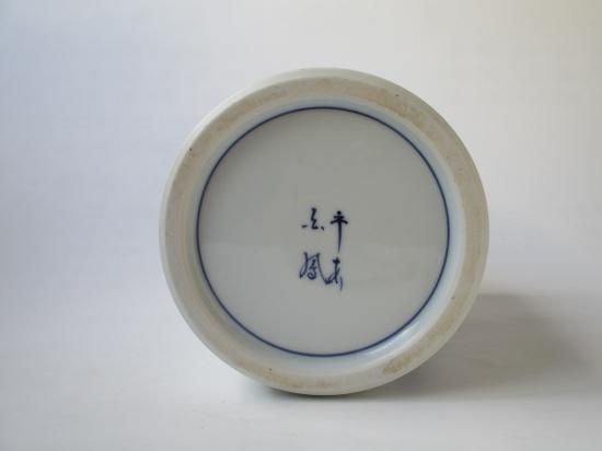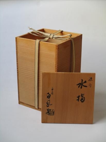一昔前のお稽古用などに重宝されていた京焼の染付・祥瑞・青磁などを得意とした作家・川瀬白鳳の水指です。