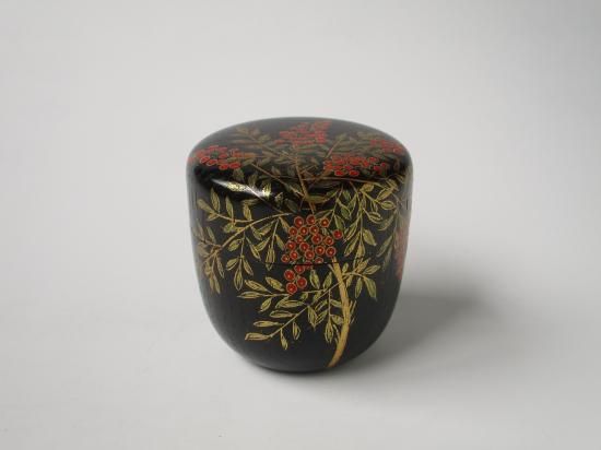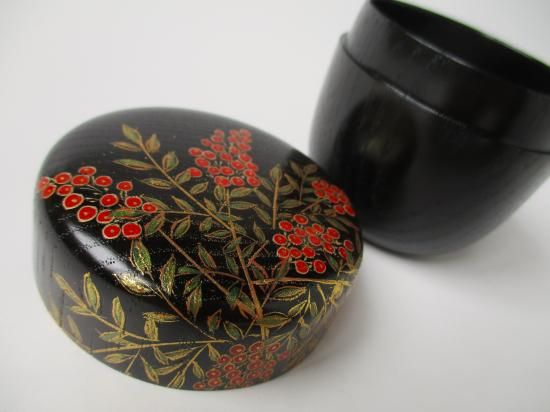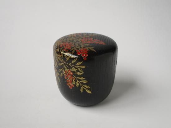 側面から甲にかけて南天が蒔絵されていて、縁起の良い栗と南天が使われていることから初釜などの祝い事にピッタリの棗です。